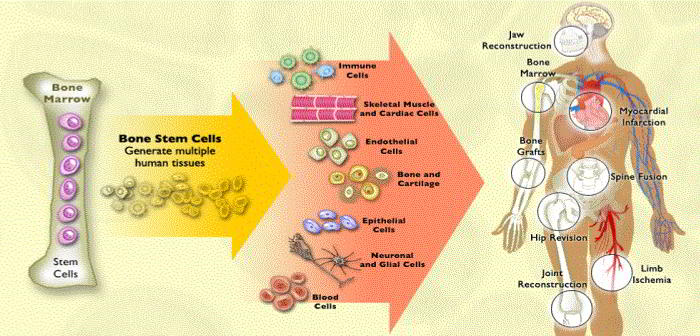 Stem cells can repair any type of mesenchymal tissue in the body after completing a multi-stage differentiation process during which a transformation will occur from stem cell to progenitor cell to precursor and finally to mature tissue. While there are some biological differences between stem and progenitor cells the terms are often used interchangeably. In medicine, most “stem cell” therapies are really progenitor cell-based therapeutics, but this is an important distinction.